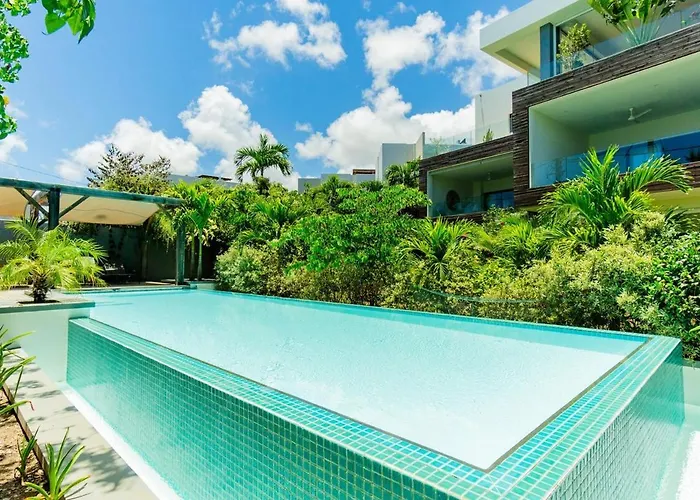 Mit Blick auf den Garten bietet das 3-Zimmer-Modern Apartment Near The Beach Pointe aux Canonniers auch eine Terrasse mit einem Swimmingpool. La Cuvette Public Beach ist 15 Minuten Fahrt von diesem 150 m² großen Apartment entfernt, während Strand Trou aux Biches ca. 10 Autominuten von hier entfernt ist.